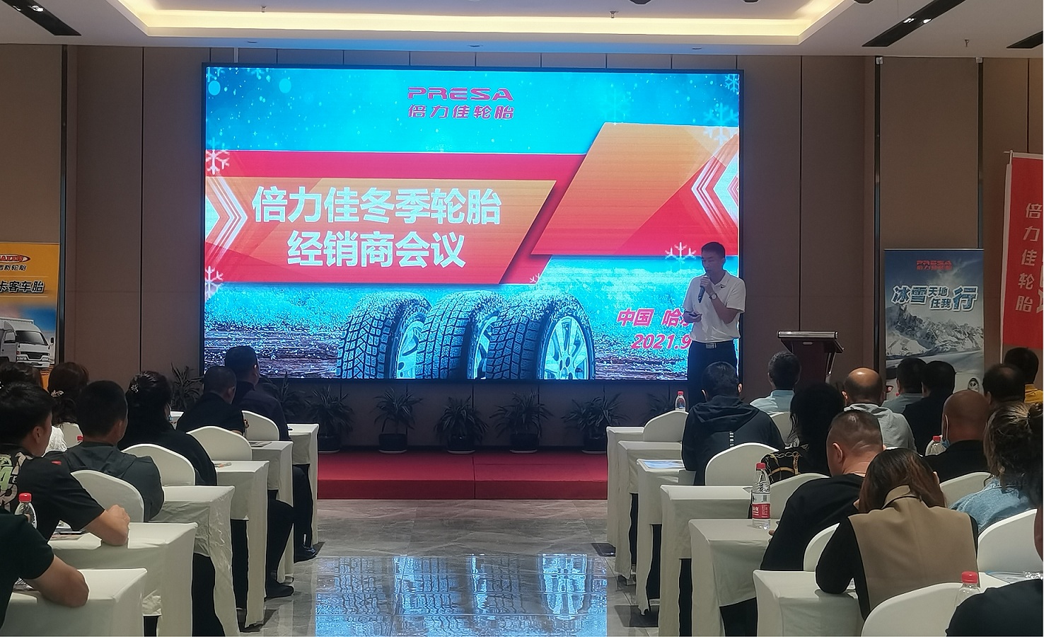 9月中旬,我会副会长单位-哈尔滨富澎轮胎销售有限公司以“玛吉斯轮胎金秋促销”及“倍力佳冬季轮胎品牌合作”为主题,在阿城区水沐温泉国际度假酒店举行了一场隆重的产品推介会。