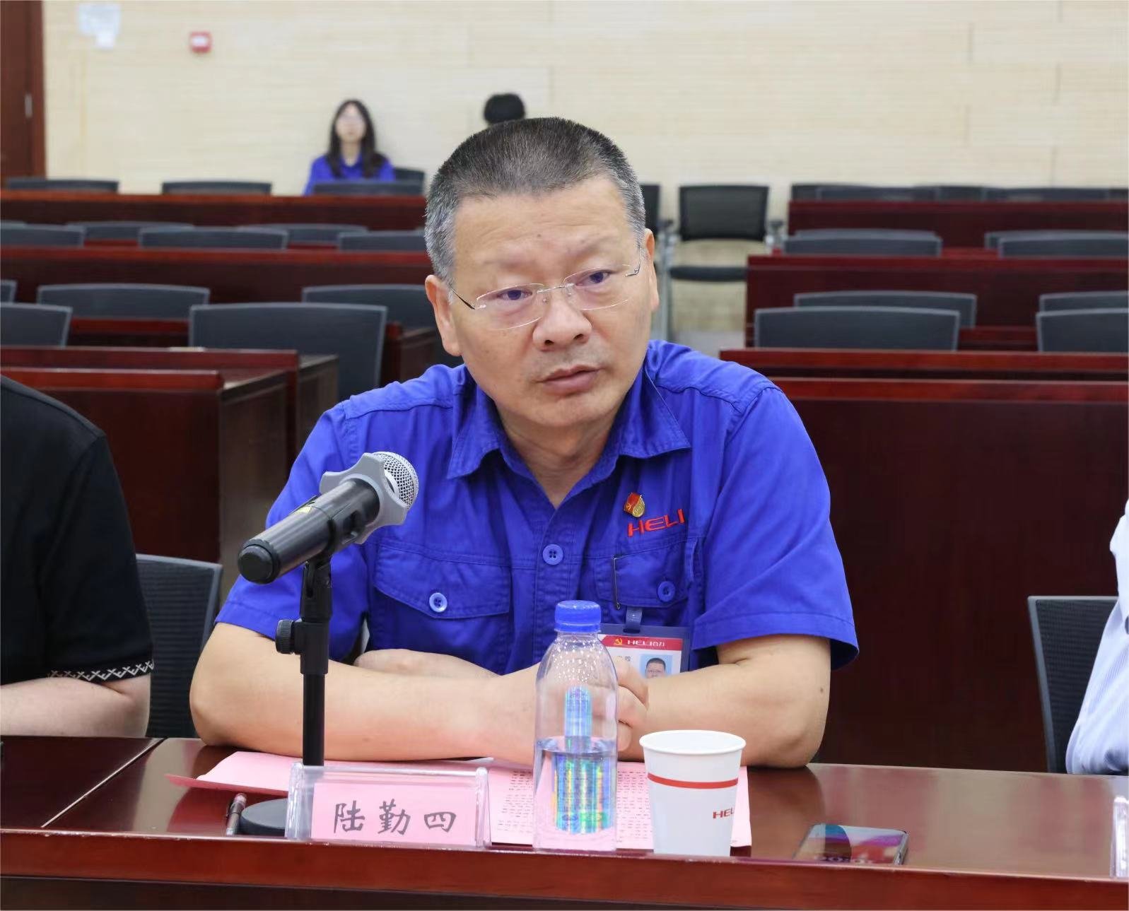考察团一行得到了安徽合力股份有限公司营销总监、营销党委书记、营销总部总经理陆勤四的热情接待。陆总对李进一行的到访表示欢迎,并详细介绍了安徽合力的发展历程。产品研发及销售人员对合力产品系列及销售情况进行了细致讲解,并带领考察团成员参观了合力展厅及生产车间。